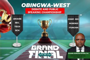 The maiden edition of the 2025 Obingwa-West School Debate Championship, sponsored by the Chairman, House Committee on Public Service Matters, Abia State House of Assembly, Erondu Uchenna Erondu Jnr, has entered its final stage, with Amaise Community Secondary Technical School, Ukpakiri, set to face Comprehensive Senior Secondary School, Mgboko Itungwa, in what promises to be a thrilling showdown.