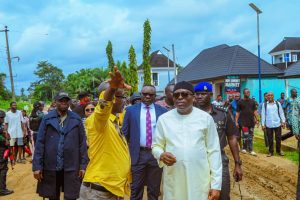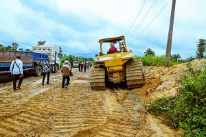 “You can see the level of trekking and maneuvering we did before getting here,” he said. “One of the purposes of our government is to do everything right and get value for money. The contractor handling the road from the bridge to the East–West road is not doing a good job. I am not impressed; it is obvious they don’t have the capacity and I will review the contract.”