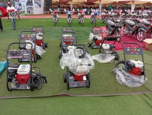 The empowerment programme featured the distribution of a wide range of items valued at over ₦1 billion, aimed at boosting economic growth, healthcare, education, and entrepreneurship. Beneficiaries received motorcycles, minibuses, buses, trucks, tippers, cars, desktop computers, laptops, generating sets, car wash machines, spraying and vulcanizing machines, as well as houses.